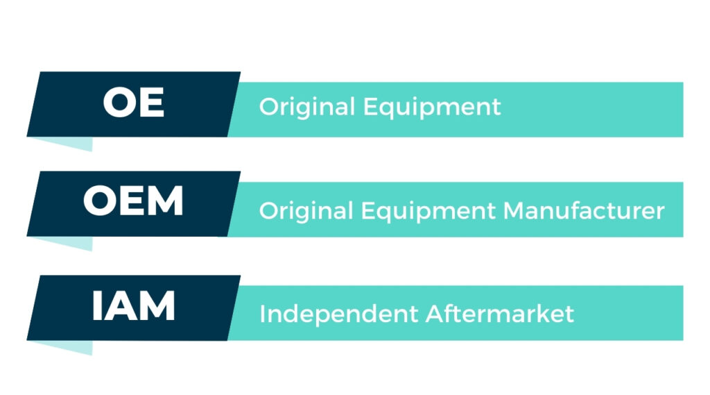 Será fundamental comprender la diferencia entre los términos más utilizados a menudo en el sector, conocidos como OE (Original Equipment), OEM (Original Equipment Manufacturer) e IAM (Independent Aftermarket), aquí os presentamos sus diferencias clave: